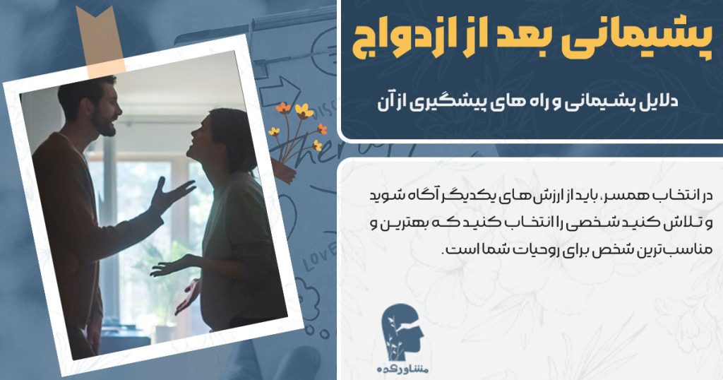 پشیمانی بعد از ازدواج یکی از مسائلی است که هر زوجی پس از گذشت مدتی و به دلایل مختلف در برابر آن قرار میگیرد. ازدواج مسئله مهمی است و بسیاری از زوجین حتی با وجود مشورتهای لازم با خانوادههایشان و یا کمک گرفتن از یک مشاور متخصص هم نمیتوانند در مواردی باعث جلوگیری از پشیمانی خود شوند. مرکز مشاوره ازدواج، مشاور کده.